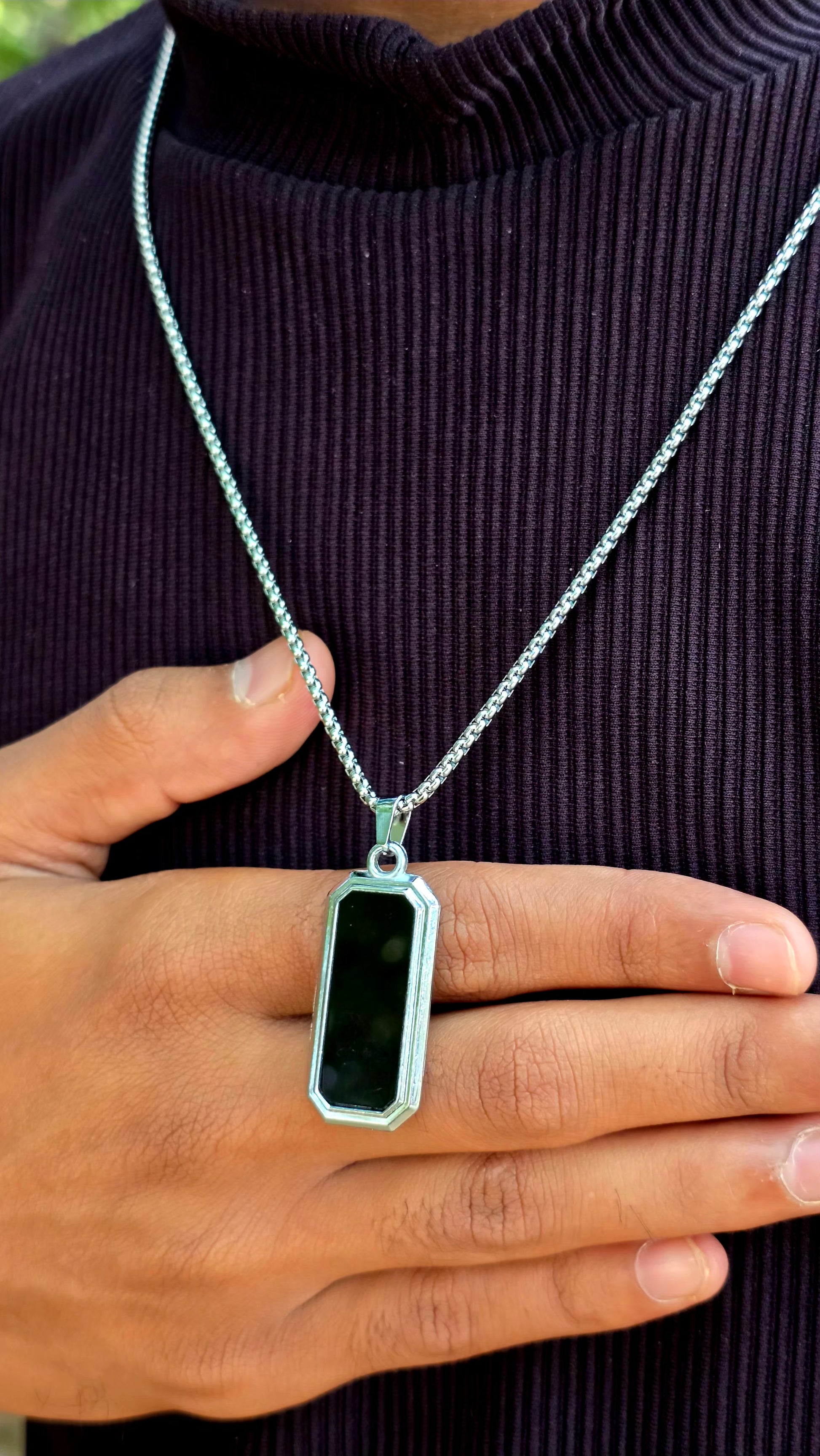 Add a touch of sophistication to your style with this Elegant Black Onyx Rectangular Pendant, paired with a premium-quality silver chain. The bold black stone set in a sleek rectangular frame gives a modern yet timeless look — perfect for men who prefer classy, minimal, and powerful accessories.