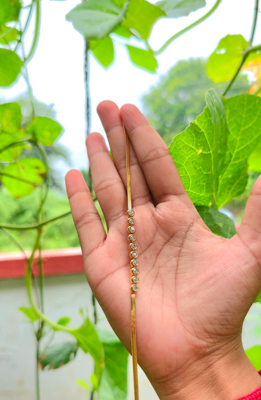 Add a touch of grace to your look with this gold-plated anklet adorned with sparkling stones. Its elegant design makes it the perfect accessory for both traditional and western outfits. Made with skin-friendly, nickel-free alloy, this anklet offers comfort along with style. Whether it’s for daily wear, a festive occasion, or a special celebration, this anklet enhances your charm effortlessly.