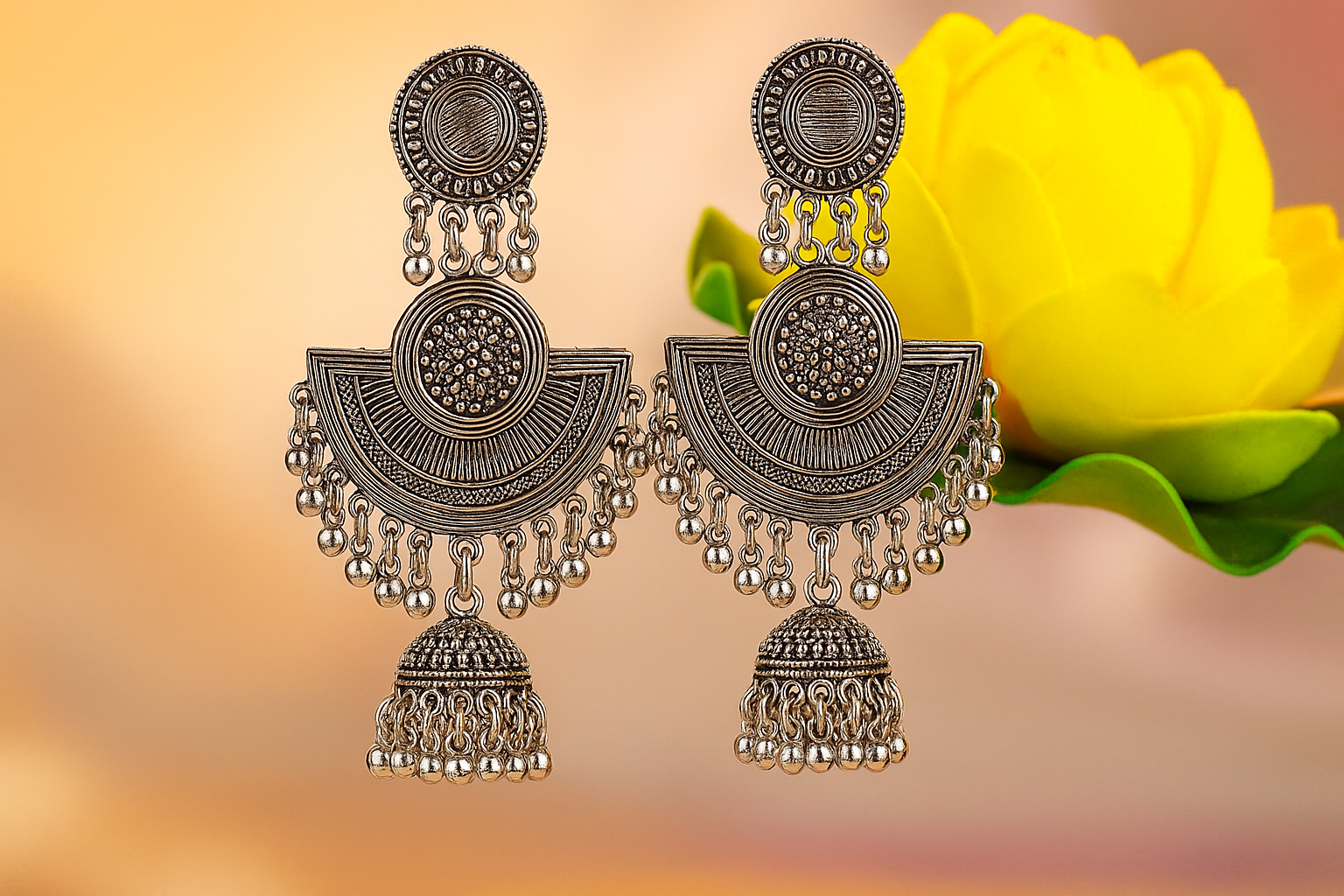 Elegant Silver Jhumka Earrings – Ethnic Beauty