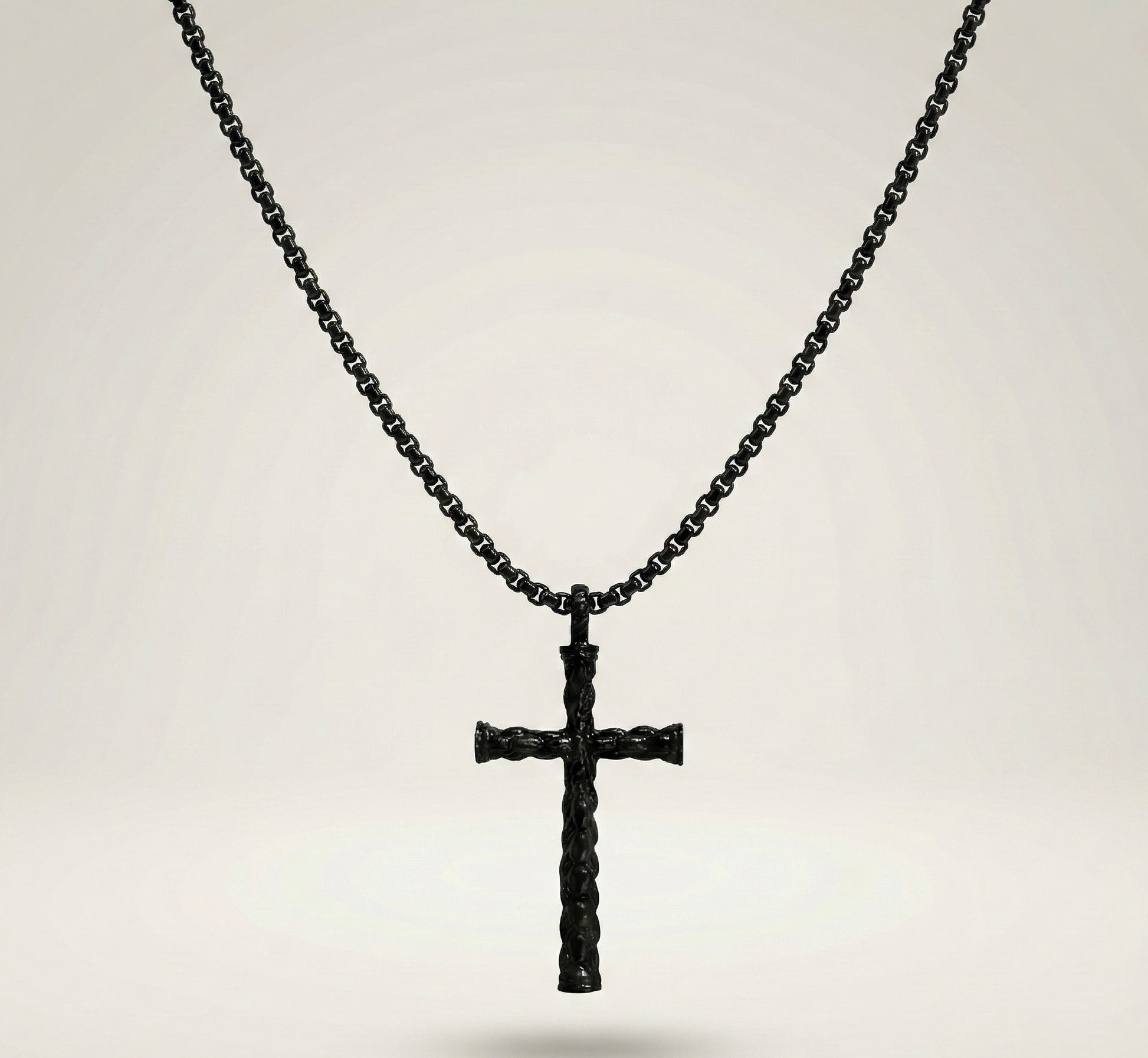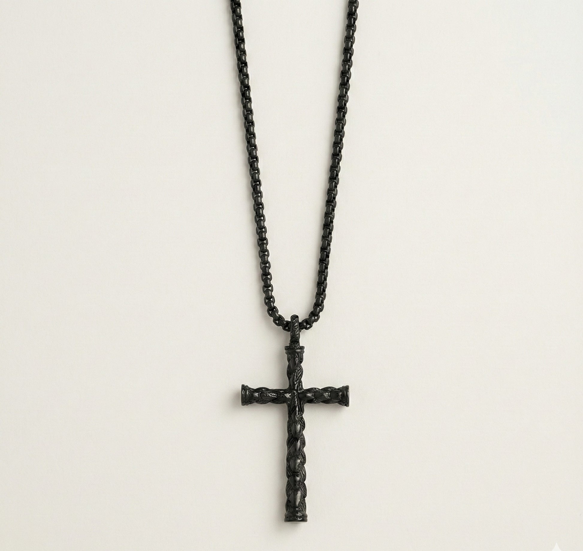 Make a bold style statement with this Premium Matte Black Braided Cross Pendant Necklace, specially designed for men who prefer a strong, minimal, and masculine look.