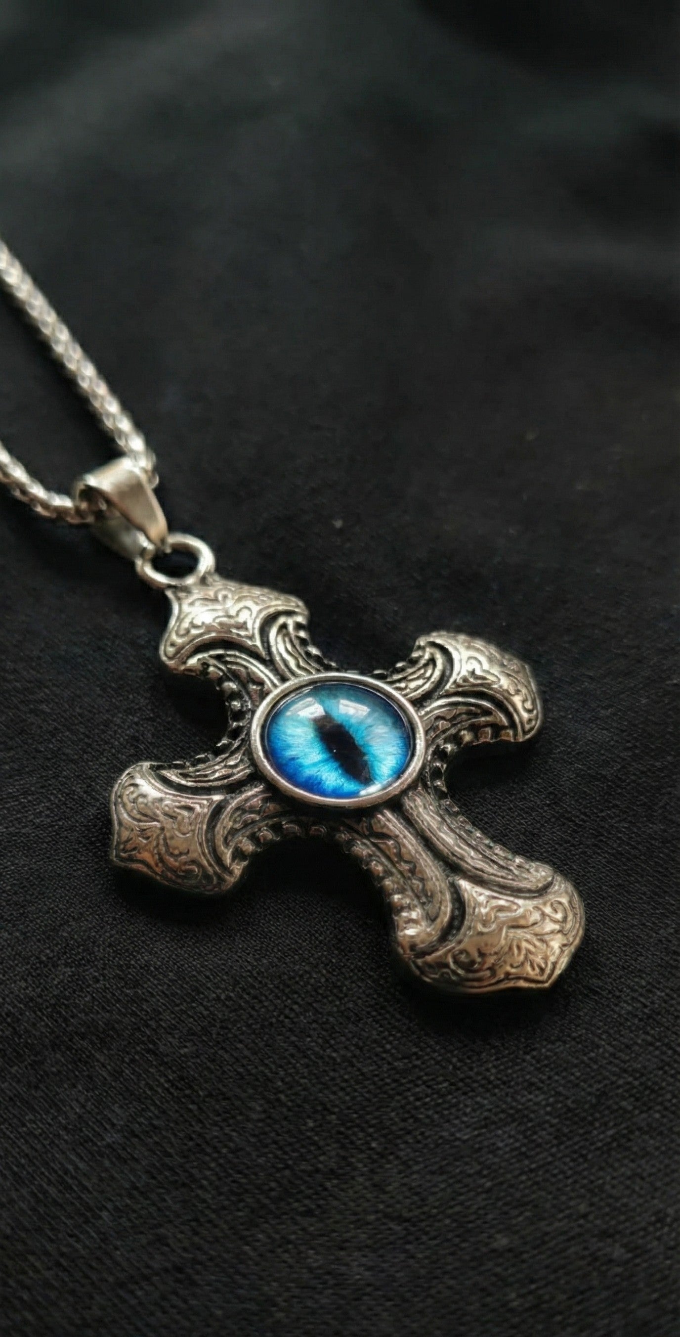 Upgrade your style with this Premium Silver Cross Pendant Necklace, designed for men who prefer a bold yet elegant look. The pendant features a finely engraved silver cross with a striking blue evil eye stone at the center, symbolizing protection, strength, and confidence.Crafted with high-quality stainless steel, this necklace offers long-lasting shine, durability, and resistance to rust or fading. The sleek silver chain complements the pendant perfectly, making it suitable for daily wear, parties, casual outfits, and special occasions.